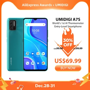 -25% UMIDIGI A7S 6.53" 20:9 Large Full Screen 32GB 4150mAh Triple Camera Cellphone Infrared Temperature Sensor Type C Smartphone $74.99